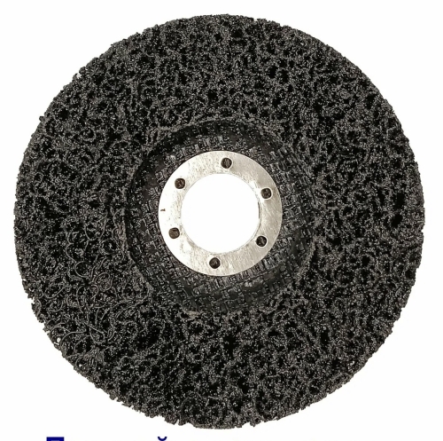 Коралловый зачистной диск, зернистость мелкая, цвет чёрный. Диаметр 115 мм, толщина 14 мм. Крепление «под болгарку».